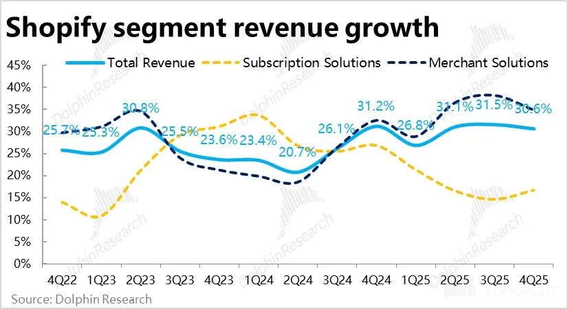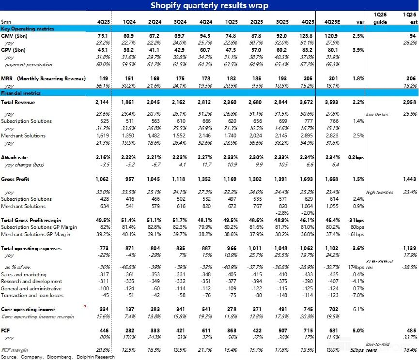 同时,Shopify 支付在 GMV 中的渗透率也环比走高了整 1.8pct 到 67.2%,带动支付额GPV 的增速跑赢 GMV 增速,达 37% ,跑赢市场预期幅度更大。