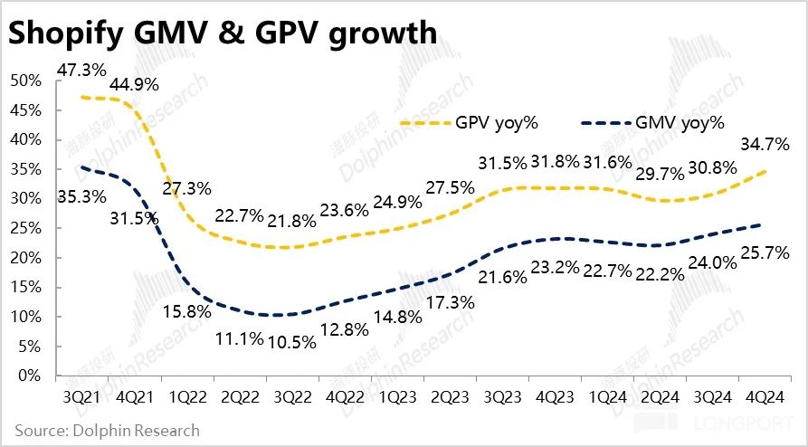 然而 Shopify 当期的高估值,意味着市场更高的预期,据悉买方对本季 GMV 增速的预期实际在 25%~26%,因此本季表现更多只是符合甚至稍跑输更乐观投资人的预期。