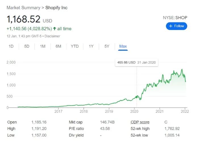 Shopify股价走势
