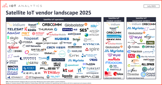 近日,市场研究机构IoT Analytics发布卫星物联网相关研究报告,数据显示,截至2025年6月底,已有超过100家供应商活跃在卫星物联网市场上,市场更加分散。其中,接近2/3的卫星物联网运营商采用低轨卫星。卫星物联网还是一个相对小众的领域,虽然卫星物联网单位价值较高,其ARPU值约为蜂窝物联网的15倍,但其连接规模有限,目前卫星物联网连接数占全球物联网连接数仅0.04%,占全球蜂窝物联网连接的0.17%。因此,推动规模化连接、降低技术门槛是提升卫星物联网生态的重要路径,其中技术路线选择就较为重要。