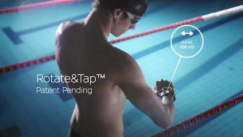 另外,Swimmo采用了Rotate&Tap专利技术,所以我们可以看到,Swimmo的表上没有任何按钮,因为所有的操作用户通过旋转或者点击手表即能完成。