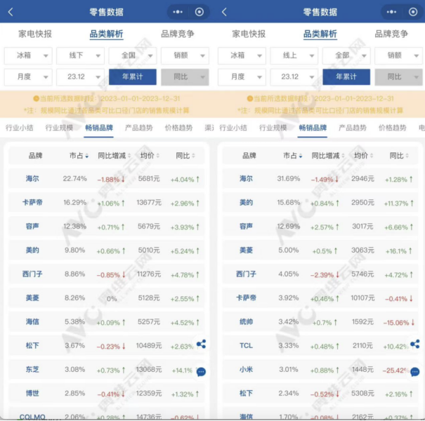 据奥维罗盘数据显示,就2023年全年线上线下销量而言,各品牌之间的差距十分显著。