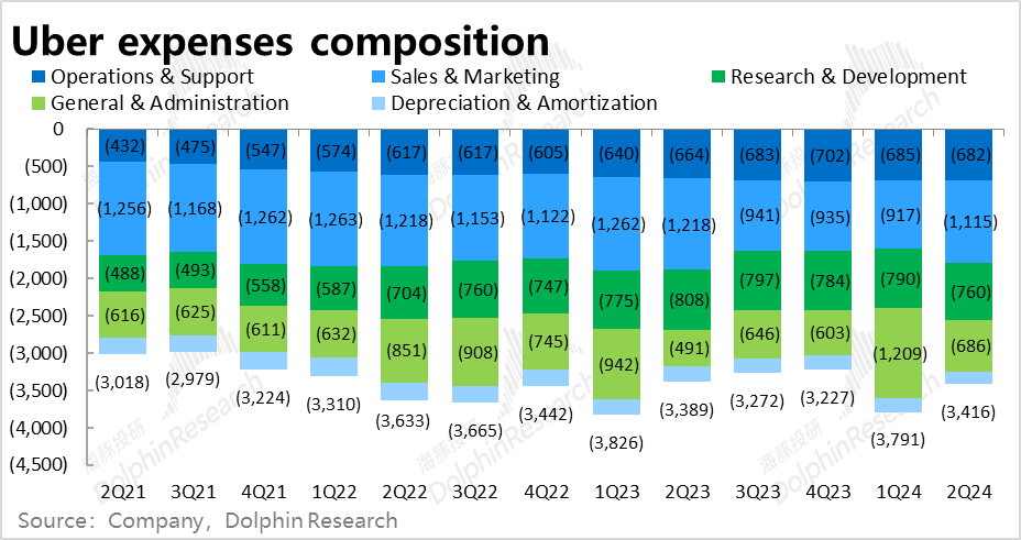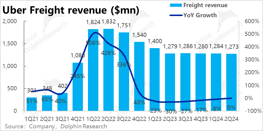 至于Uber货运业务,本季度营收约12.7亿元,环比继续略为萎缩。虽略好于预期,但对公司的总体业绩和估值几无影响。