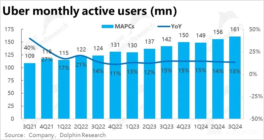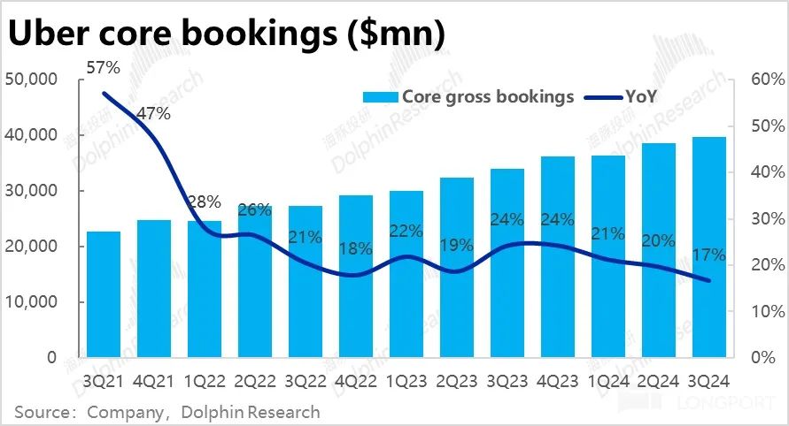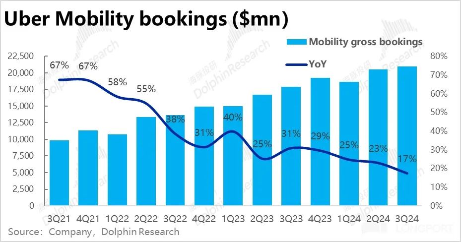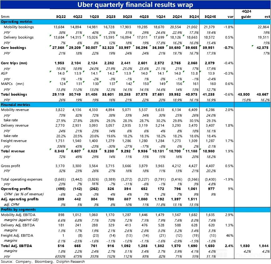 10 月 31 日晚美股盘前,“国际版滴滴”$优步.US 公布了 2024年三季度财报。业绩发布后,公司的股价大跌了 10%,初看之下主要问题是出在了核心打车业务订单金额增速的放缓,海豚投研之前的 first take 中已有初步解释。本次详细点评,我们就进一步挖掘是否还有其他的瑕疵,详细要点如下: