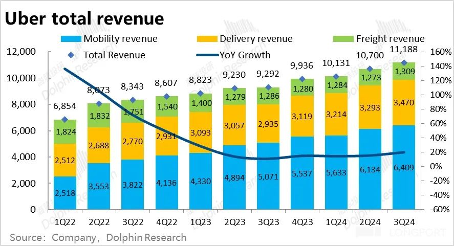 因此,即便不可否认 Uber 在打车业务上确实出现了增长放缓,竞争压力也确实可能边际提升了。但公司整体利润高双位数的增长 “毫发无伤 “,平台盈利并没有感受到压力。