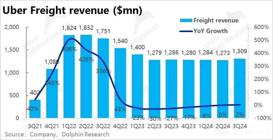 至于 Uber 货运业务,本季度营收约 13.1 亿元,同比小增 2%,虽然总算告别了萎缩阶段,但在低基数下仍近乎没有增长,说明目前该业务仍没明显起色,无需过多的关注。