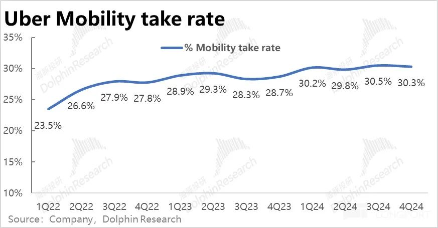4、收入角度,虽然打车业务 Gross booking 增速有所改善,但由于 take rate 环比从 30.5% 小幅下降到 30.3%。导致营收增速相比上季度的 26% 继续下滑到 25%。网约车业务利润率的下滑,应当也有受 take rate 下降的影响。这属于瑕疵之一。