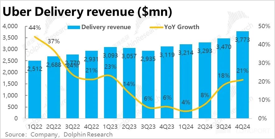 3、网约车和外卖两个支柱业务的增长双双同比改善,显然属于不错的表现。且价量驱动上,并不会受到汇率影响的业务订单量的同比增速也是由 17% 改善到了 18%,高于市场预期的 16%。反映出本季增长的改善并非只是汇率的影响,业务层面是由真实改善的(当然主要是外卖业务)。