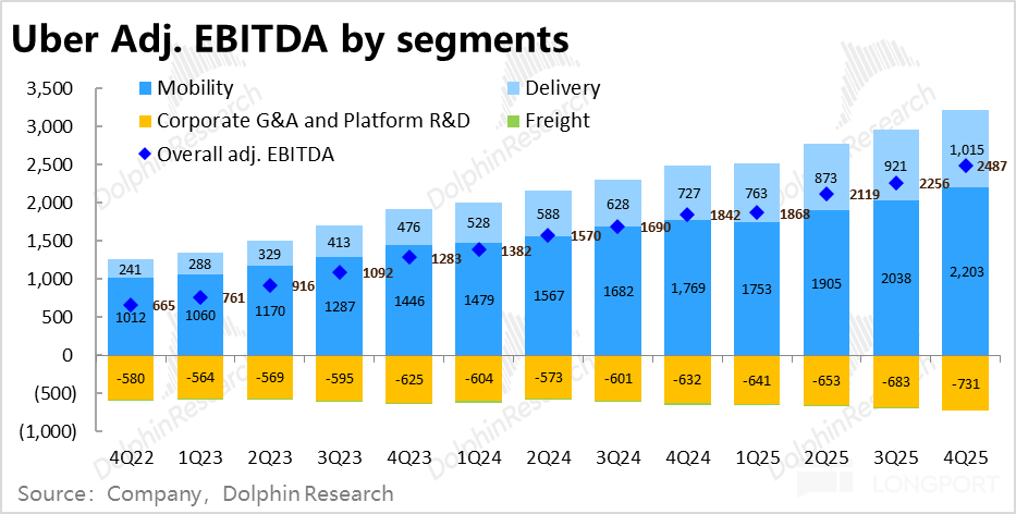 由上文可见,Uber 本季在高速增长的新增用户带动下,增长端表现不错。但对应的,为了拉动用户增长,Uber 本季各项业务的利润率相比预期略有跑输,但利润额表现不差。