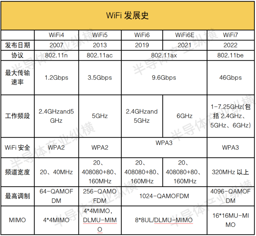 2021年WiFi 6E(802.11ax)新增了6GHz的频段增加1200MHz频谱资源,支持2.4GHz、5GHz和6GHz 三个频段。