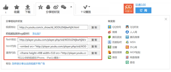 目前,优酷等国内视频网站通常提供3种嵌入代码: